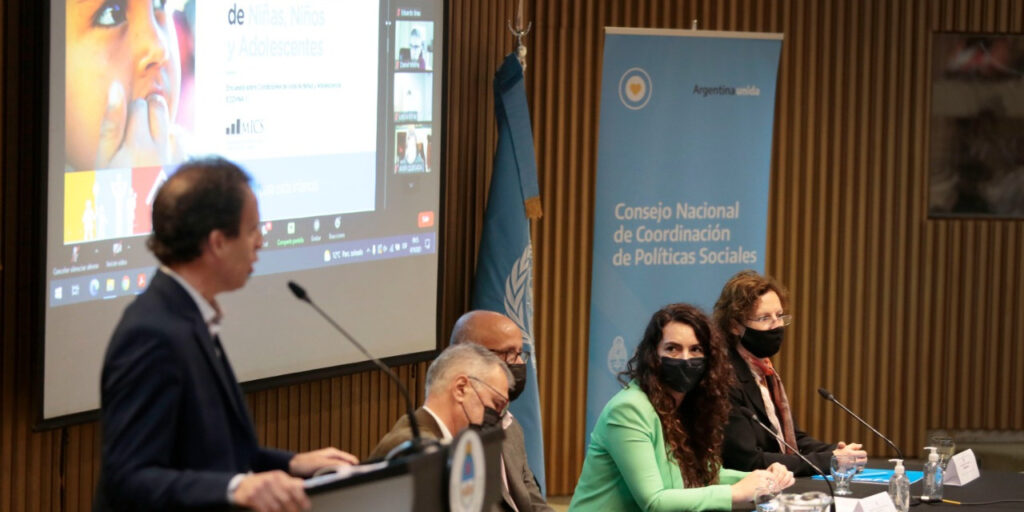Presentación de la Encuesta Nacional de Niñas, Niños y Adolescentes de Indicadores Múltiples por Conglomerados (MICS). UNICEF Argentina presentó este miércoles los lineamientos generales de la última Encuesta Nacional de Niñas, Niños y Adolescentes de Indicadores Múltiples por Conglomerados (MICS), junto al Consejo Nacional de Coordinación de Políticas Sociales (CNCPS) y la Secretaría Nacional de Niñez, Adolescencia y Familia (SENAF). La presentación se realizó en el auditorio del edificio Teniente General Castiñeiras –ex estatal SOMISA-, en Diagonal Sur y Belgrano de la Ciudad Autónoma de Buenos Aires, y contó además con representantes de los organismos del Estado nacional que conforman el comité técnico de la encuesta de campo. MICS es un programa internacional de encuestas estandarizadas de hogares desarrollado por UNICEF, que se aplica desde hace más de 20 años en más de 115 países, y que proporciona además datos valiosos para el monitoreo de los Objetivos de Desarrollo Sostenible (ODS), en el marco de la Agenda 2030. Fueron parte de la presentación, la presidenta del Consejo Nacional de Coordinación de Políticas Sociales, Marisol Merquel, la titular de la Defensoría del Niño, Niña y Adolescente, Marisa Graham; el secretario de Niñez, Adolescencia y Familia Gabriel Lerner, el Coordinador residente de Naciones Unidas Roberto Valent, la representante de UNICEF en Argentina Luisa Brumana; y el presidente del INDEC, Marco Lavagna. También la secretaria de Articulación de Política Social del ministerio de Desarrollo Social, Erica Roffler; el subsecretario de Coordinación Técnica y Análisis de Información del CNCPS, Eduardo Brau; la directora del Sistema de Información, Evaluación y Monitoreo de Programas Sociales (SIEMPRO), Paula Amaya y la directora de Información Social de esa dirección, Verónica Sforzin; la directora de Economía, Igualdad y Género del ministerio de Economía, Mercedes D’Alessandro; la directora general de Información Social Estratégica del ministerio de Desarrollo Social, Marcela Rebón; el especialista en Inclusión Social y Monitoreo de UNICEF Argentina Sebastián Waisgrais; y la Jefa regional de Planificación y Programación de esa misma agencia, Rada Noeva. Cabe destacar que el Sistema de Información, Evaluación y Monitoreo de Programas Sociales (SIEMPRO), que funciona en la órbita del organismo que encabeza Marisol Merquel, preside el comité técnico de la Administración Pública Nacional. Algunos de los datos más destacados que arroja la encuesta son que el 7 % de niños y niñas menores de 5 años no asistieron a los controles de salud en los últimos 12 meses; que el 96% de las madres tienen una revisión médica luego del parto; y que el 59% de los niños, niñas y adolescentes (entre 1 y 14 años) sufrieron algún “método violento de disciplina”; y también se destaca el hecho de que el 18% de las mujeres encuestadas dijeron haber sufrido discriminación o acoso, entre otros datos que componen una radiografía en materia de niñez y adolescencia. De la presentación participaron también autoridades de los ministerios de las Mujeres, Géneros y Diversidad; Educación; Salud; Trabajo, Empleo y Seguridad Social. Los resultados de la encuesta se pueden ver en las redes sociales de UNICEF Argentina y del CNCPS. Ver nota original FUENTE: argentina.gob.ar Últimos Artículos Alberto Fernández: “No existe otro remedio que la inversión privada para lograr un desarrollo sostenible” Leer Más… Santilli: “Vamos a luchar todos los días para que el aeropuerto de El Palomar vuelva abrir y siga dando trabajo a los bonaerenses” Leer Más… Santilli: “Hoy tenemos 167 impuestos que asfixian a las Pymes y al sector productivo”. Leer Más… La arenga de Santilli y Carrió en la costa atlántica: “Comienza un cambio, vamos que podemos” Leer Más… Santilli sobre las medidas de Kicillof: “Si creen que pueden influir en el voto, están equivocados. Dejen de subestimar a los bonaerenses” Leer Más… Santilli, Ocaña y Manes lanzaron la campaña de Juntos. Leer Más… Santilli, Manes y Ocaña en el lanzamiento de Juntos. Leer Más… Presentación de la Encuesta Nacional de Niñas, Niños y Adolescentes de Indicadores Múltiples por Conglomerados (MICS). Leer Más…